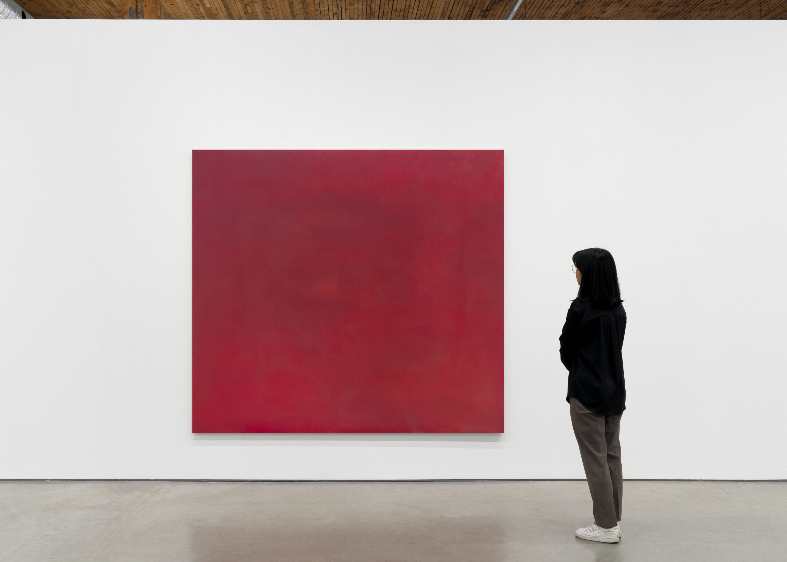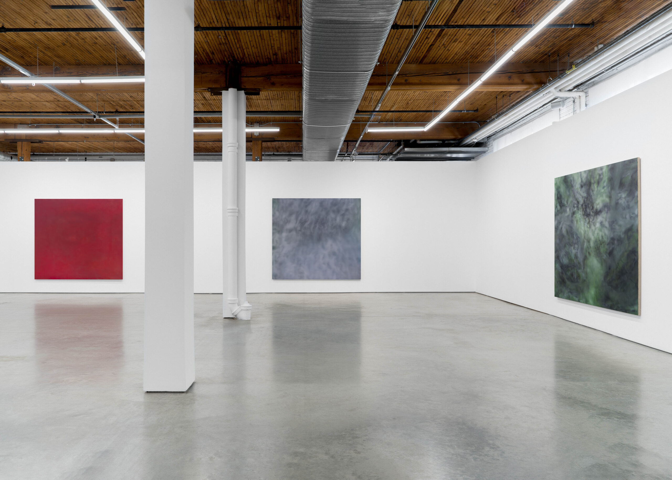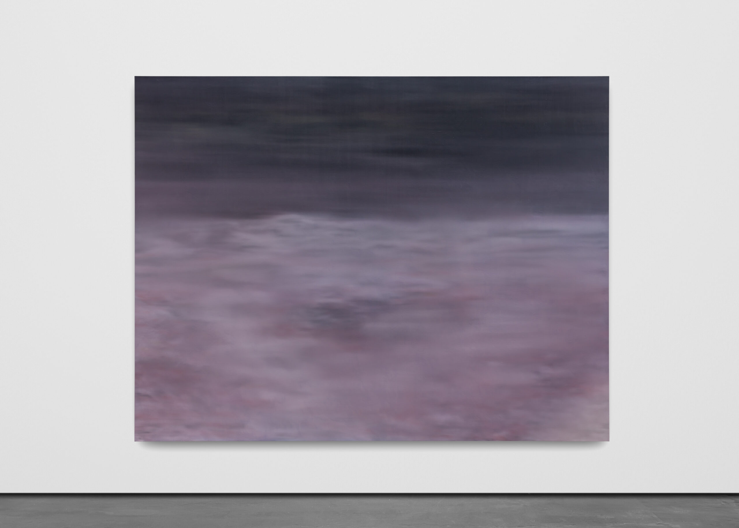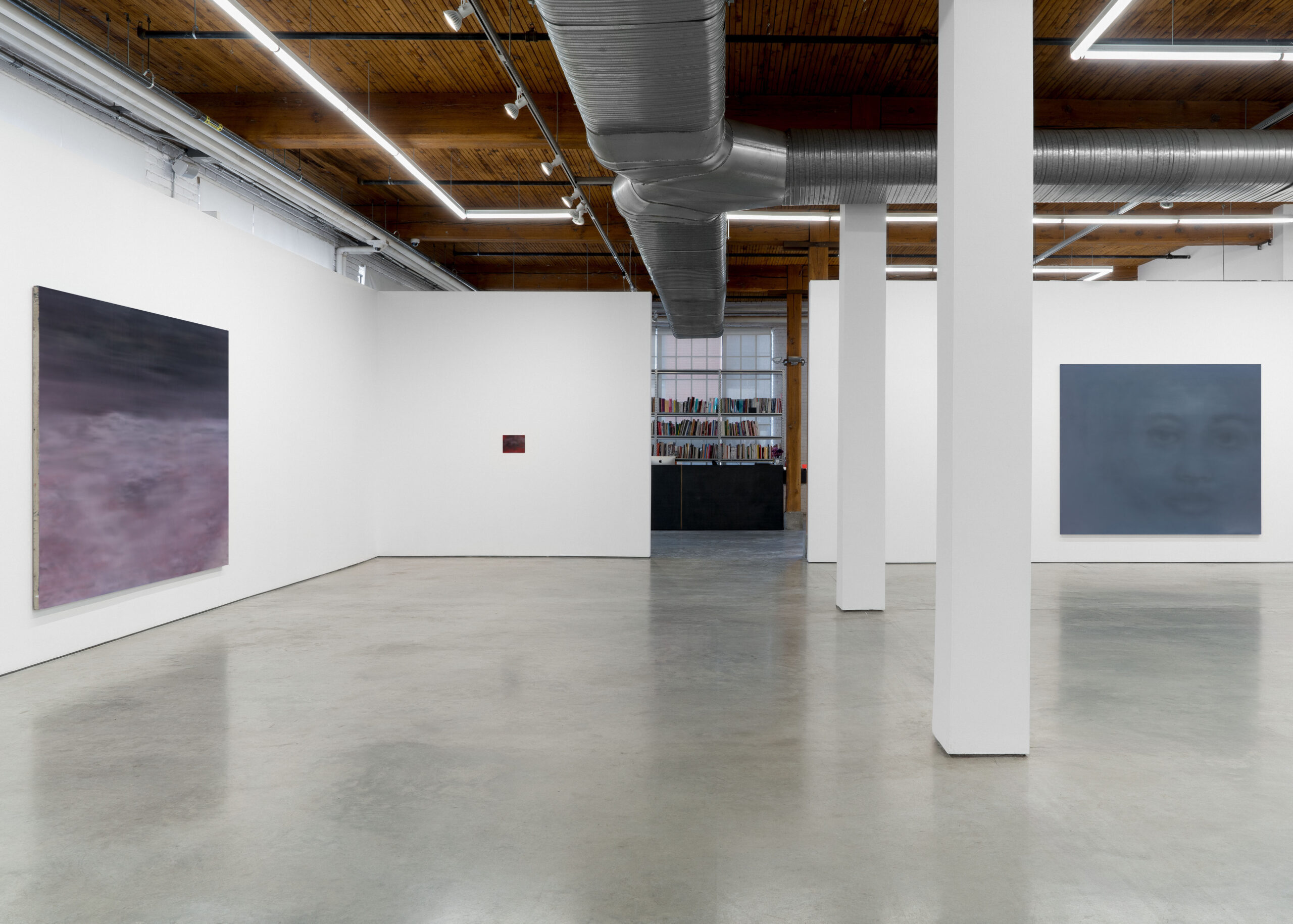 À première vue, les abstractions amorphes et déstructurées de Derviz semblent avoir pris vie sans intervention, comme si elles étaient apparues par enchantement. Pourtant, leur apparence éthérée qui captive au premier abord est le résultat d’innombrables traces superposées, fruit d’une méthode laborieuse et stratégique qui ne fait pas de la visibilité sa priorité. Les images de référence, assemblées intuitivement comme guides discrets pour la composition globale, sont choisies non pas pour leur clarté représentative, mais pour leur capacité à éclairer une scène avant de s’estomper. Les structures sous-jacentes des peintures sont tracées au fusain, puis disparaissent à mesure que les œuvres s’achèvent : Derviz applique plusieurs couches de peinture à l’huile semi-transparente, créant ainsi des mondes sans bornes ni frontières. L’accumulation de ces surfaces translucides structure le tableau tout en laissant place à d’heureux imprévus. De ce terrain mouvant émergent des masses lourdes et des ombres vaporeuses, des formes qui semblent muter en fonction de leur environnement. Derviz maîtrise toute une gamme d’effets atmosphériques, produisant une coexistence désorientante entre lourdeur et légèreté.